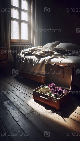 Открытый, пустой чемодан в кровати, Ai generated image