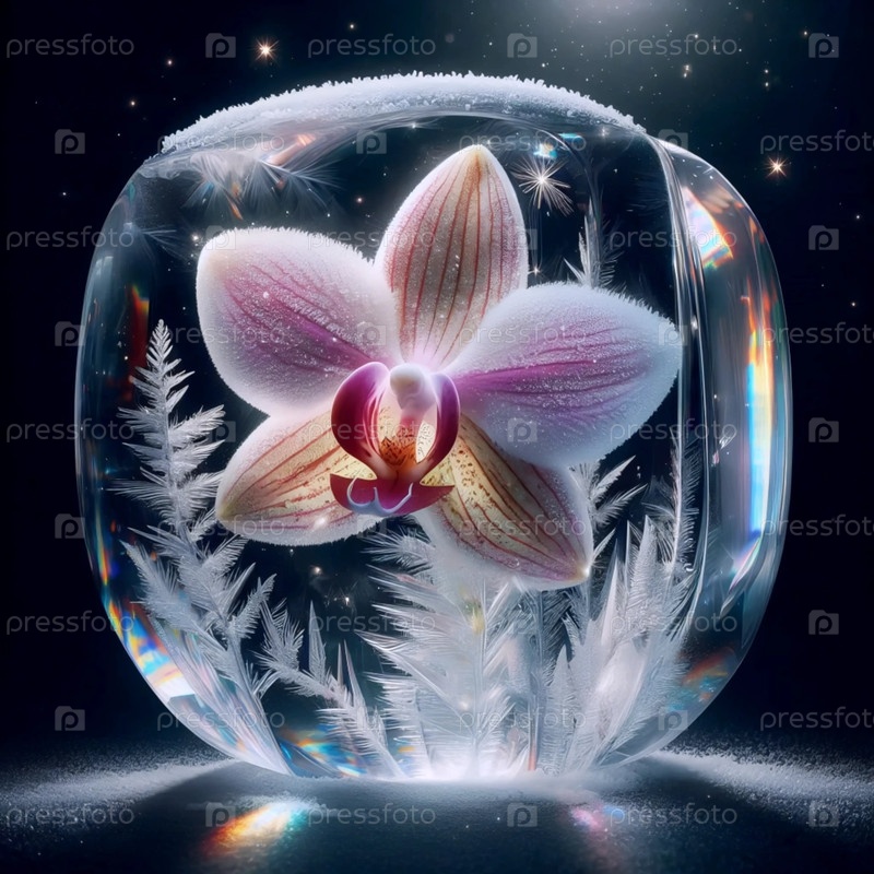 Орхидея в кристалле льда, Ai generated image