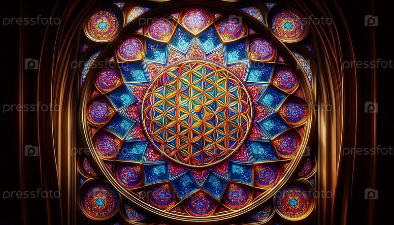 Священная геометрия в витраже, Ai generated image