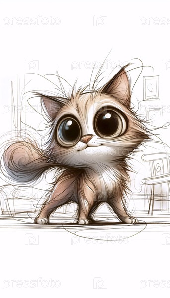 Комический рисунок кошачьего персонажа, Ai generated image