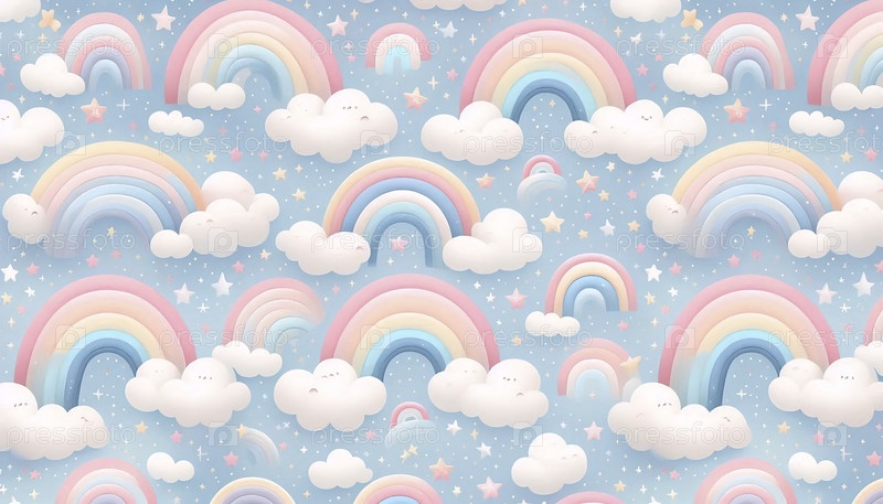 Радужный рисунок с причудливыми пастельными дугами и облаками, Ай создал изображение