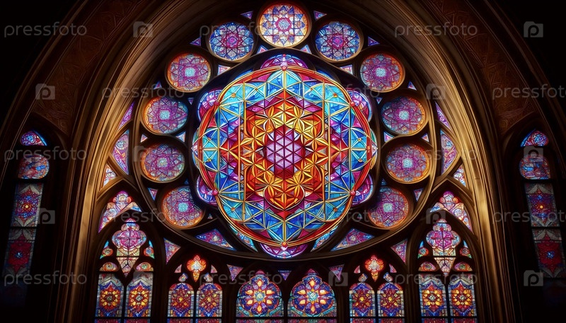 Священная геометрия в витраже, Ai generated image
