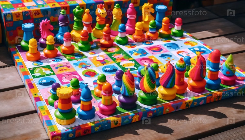 Детские шахматы с яркими фигурами, Ai generated image