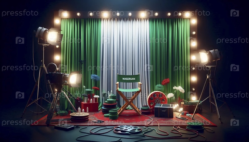 Нигерийский флаг в яркой кинокультуре Ноливуда, Ai generated image