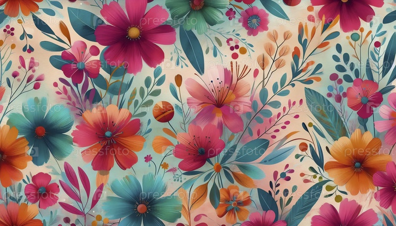 Красочный сад бохо акварель цветов цифровой бесшовный шаблон, Ai generated image