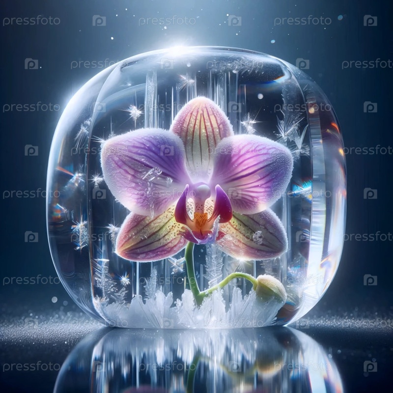 Орхидея в кристалле льда, Ai generated image