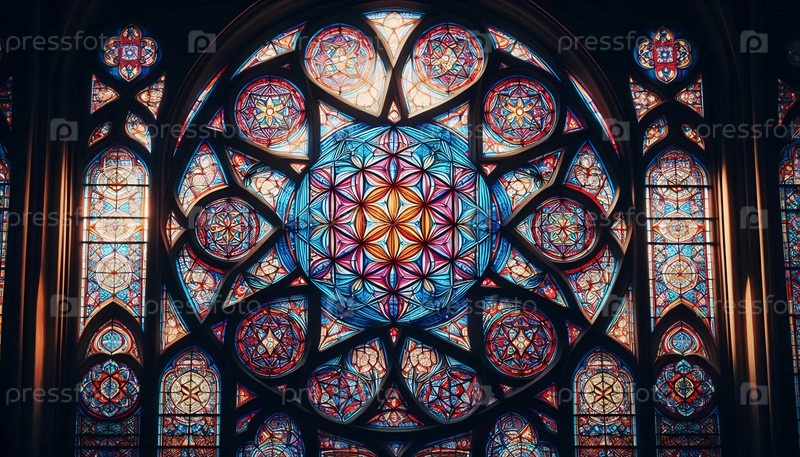 Священная геометрия в витраже, Ai generated image