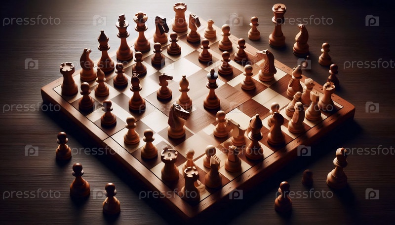 Шахматная доска с фигурами в начале игры, Ай создал изображение