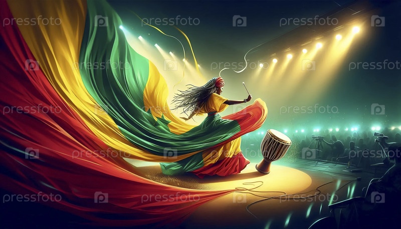 Сенегальский флаг в живой музыке и танцевальной культуре Тиосана, Ai generated image