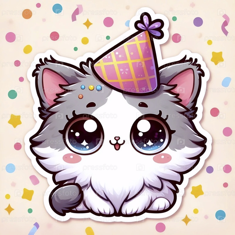 Милая наклейка котенка с бумажной короной, Ai generated image