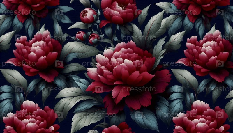 A red peony floral print seamless pattern, Ai generated image Красный пион цветочный печат бесшовные узоры, Ай создал изображение