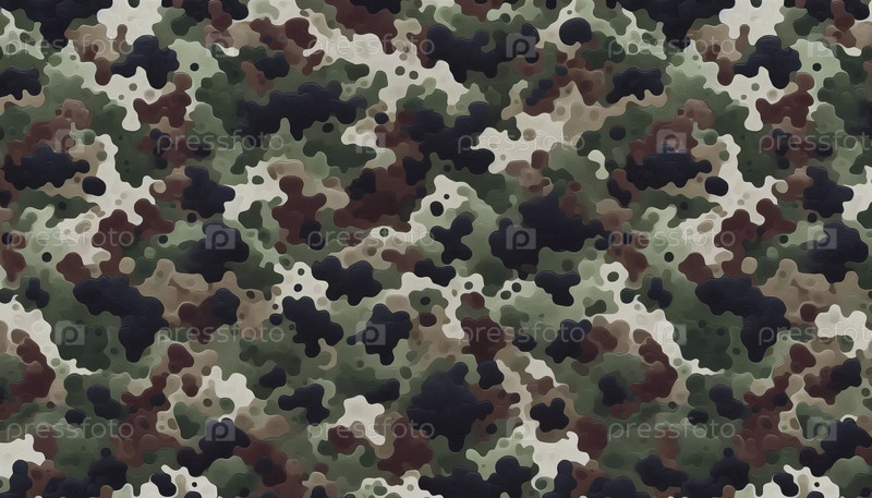 Классический бесшовный шаблон камуфляжа зеленых лесов, Ai generated image