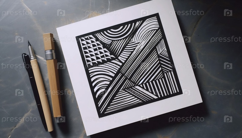 Современный линографический принт с геометрическими формами, Ai создал изображение
