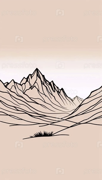 Минималистское линейное искусство горного хребта, Ai generated image