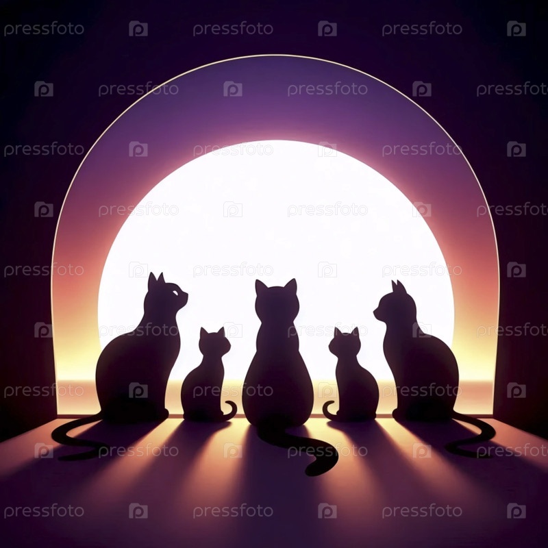 Минималистский силуэт семьи кошек в окне, Ai generated image