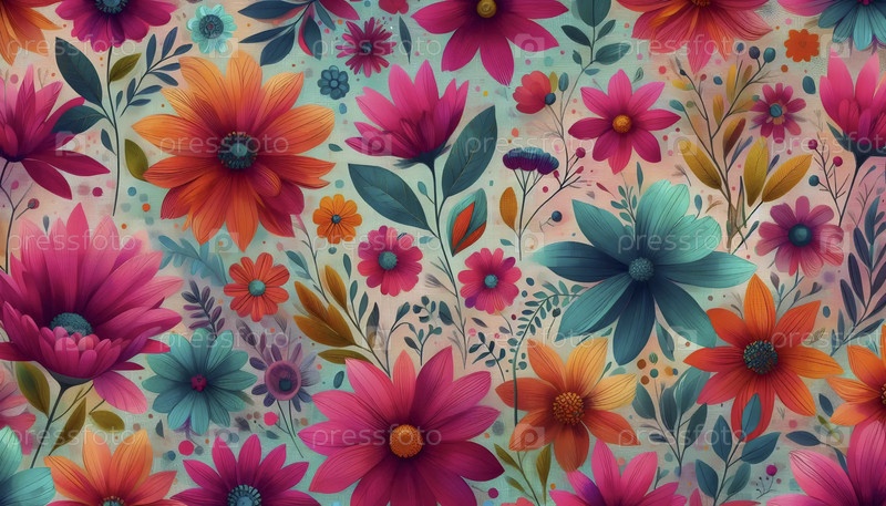 Красочный сад бохо акварель цветов цифровой бесшовный шаблон, Ai generated image