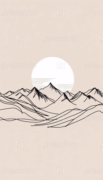 Минималистское линейное искусство горного хребта, Ai generated image