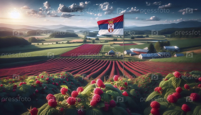 Сербский флаг в малиновом сельском хозяйстве, Ai generated image