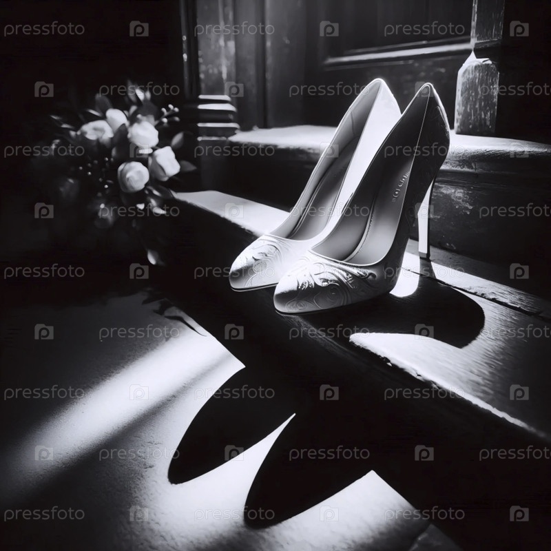 Высококонтрастные туфли ждут невесту, Ai generated image
