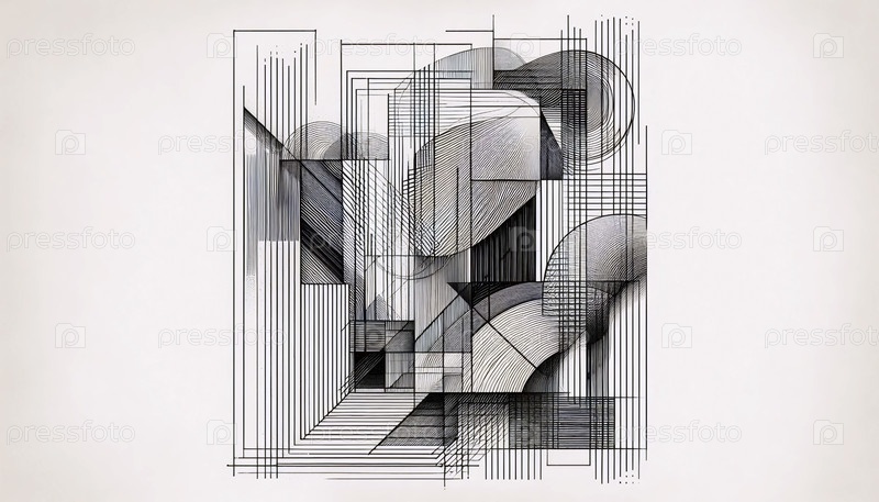 Минималистическое черно-белое абстрактное произведение искусства, Ai generated image