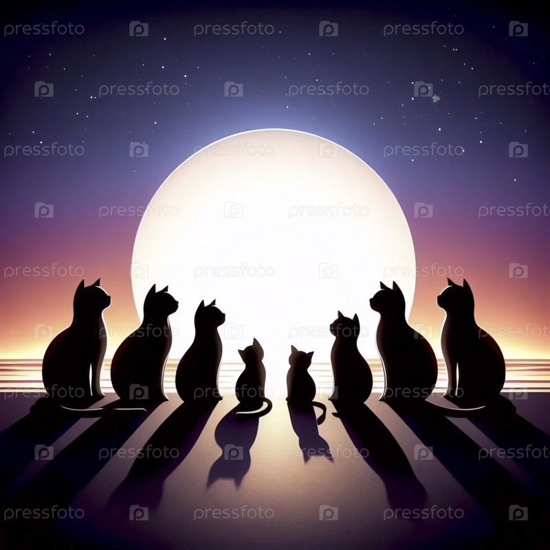 Минималистский силуэт семьи кошек в окне, Ai generated image