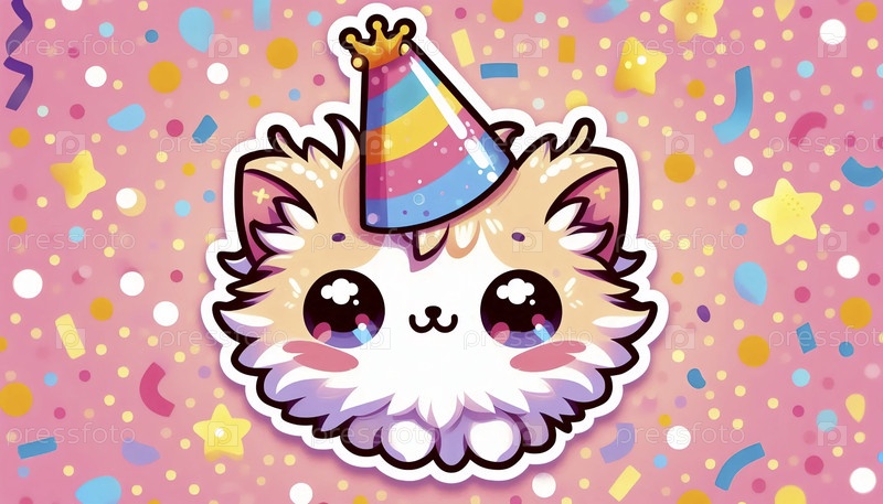 Милая наклейка котенка с бумажной короной, Ai generated image