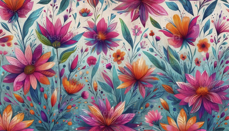 Красочный сад бохо акварель цветов цифровой бесшовный шаблон, Ai generated image