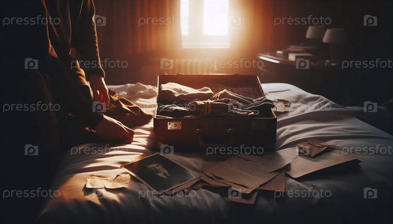 A sepia tone suitcase decision, Ai generated image Решение о чемодане с сепией тоном, созданное Ай
