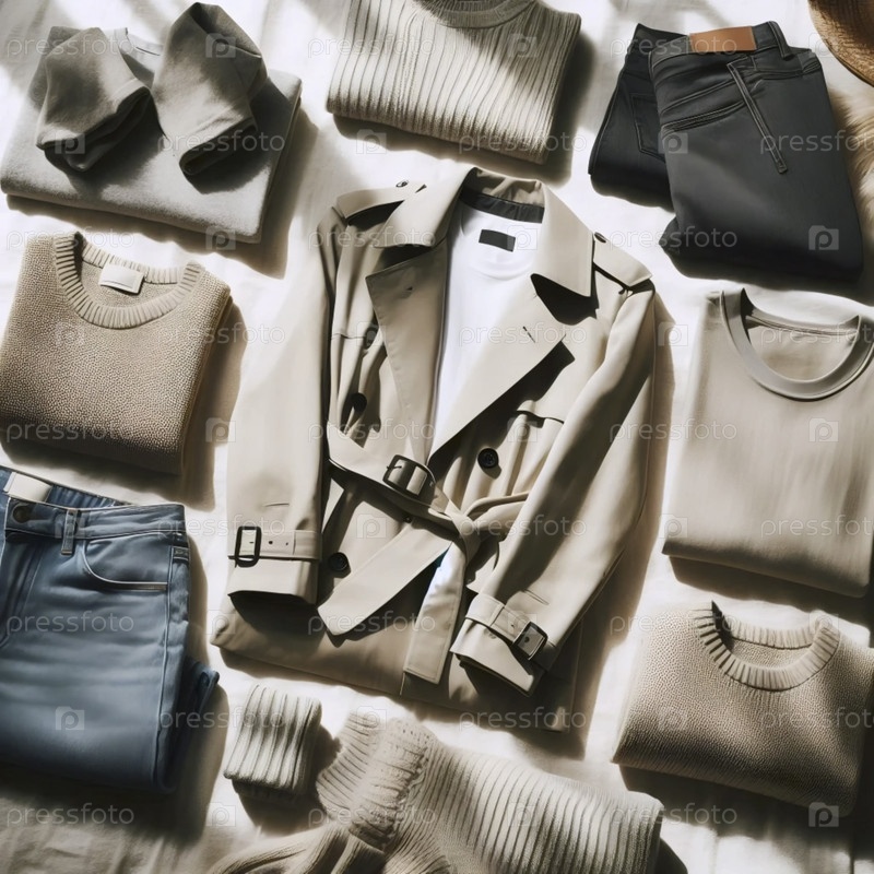 Курительный гардероб капсулы A flatlay, Ai generated image