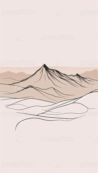 Минималистское линейное искусство горного хребта, Ai generated image