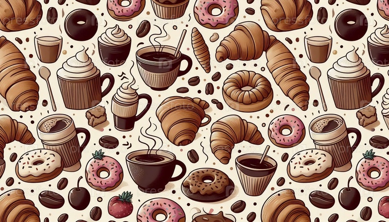 Капризный бесшовный рисунок кофе и кондитерских изделий, Ai generated image