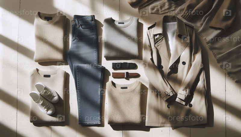 Курительный гардероб капсулы A flatlay, Ai generated image
