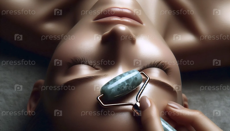 Массаж лица с нефритовым роликом, Ai generated image