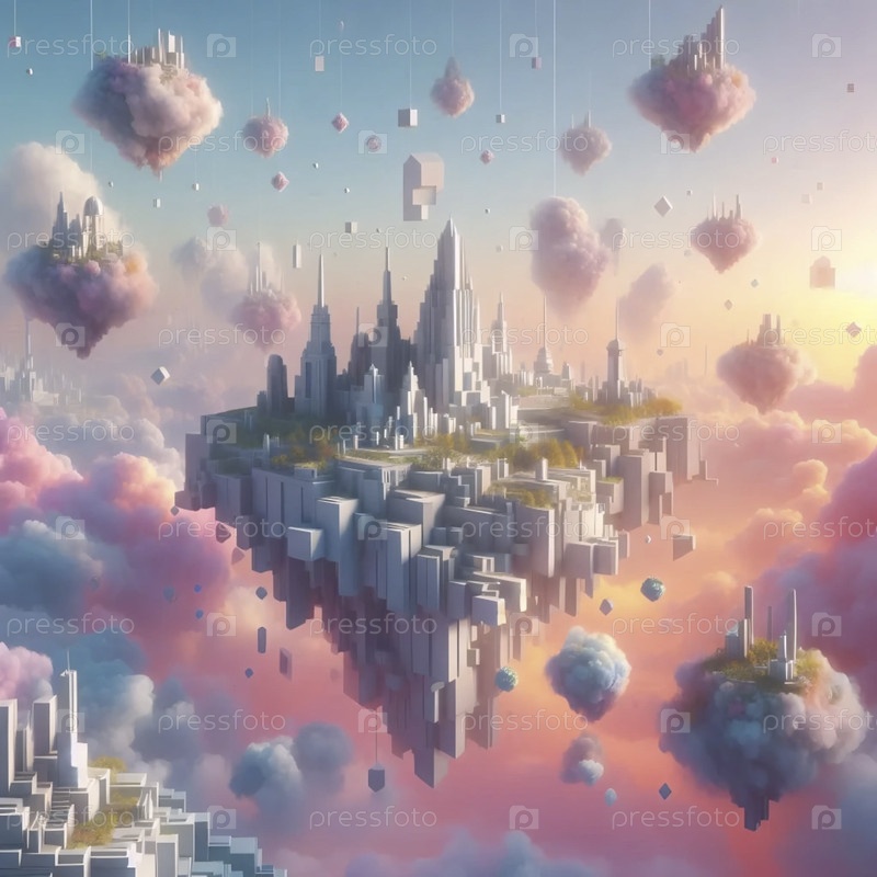 Сюрреалистический 3D-ландшафт с плавающими объектами, созданный изображением Ai