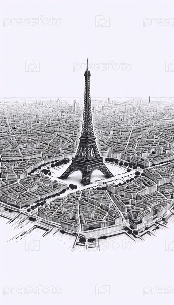 Схематическая карта города линия искусство Парижа, Ai generated image