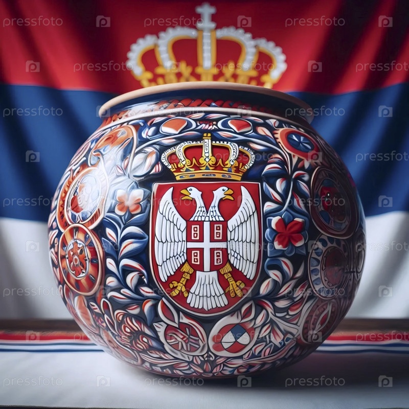 Сербский флаг в традиционной керамике, Ai generated image A