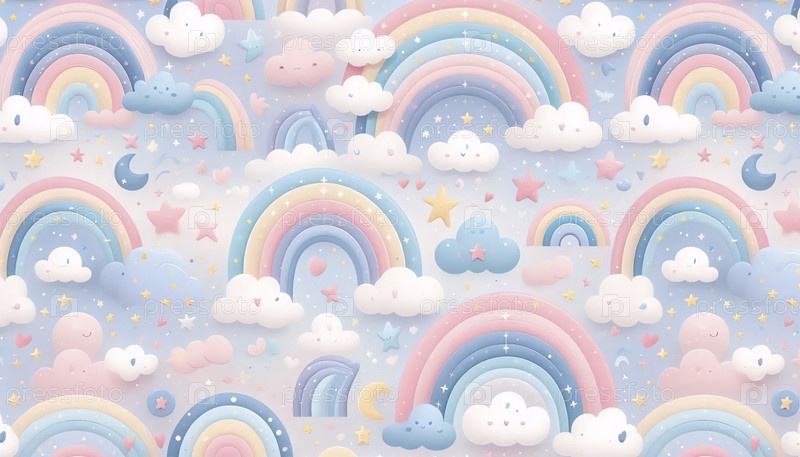 Радужный рисунок с причудливыми пастельными дугами и облаками, Ай создал изображение