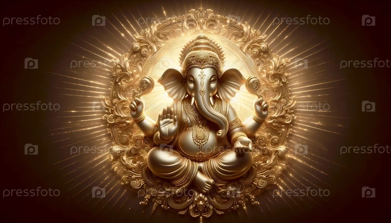 Господь Ганеша в золотой иллюминации, Ai generated A image