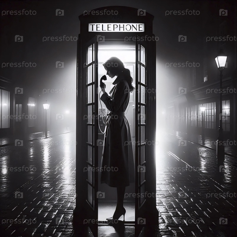 Женщина колеблется у телефонной будки, Ai generated image