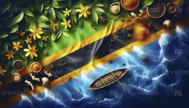 Флаг Танзании в Занзибаре специи и культура острова, Ai generated image A