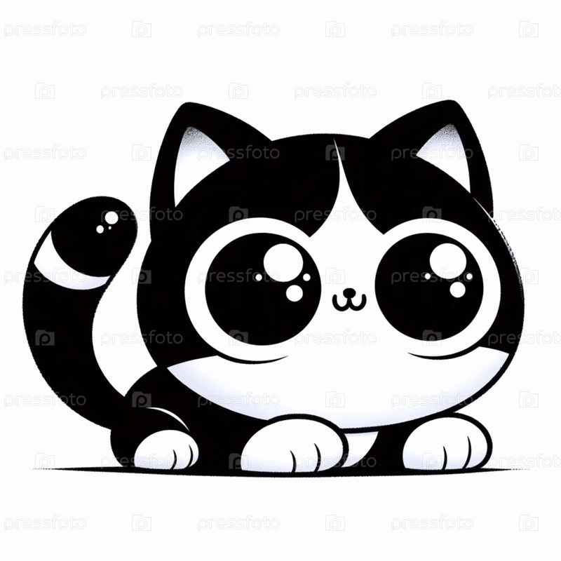 Черно-белая иллюстрация кота кавайи, Ai generated image