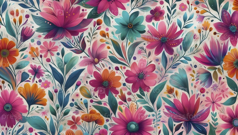 Красочный сад бохо акварель цветов цифровой бесшовный шаблон, Ai generated image