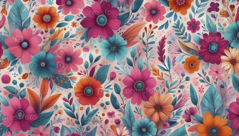 Красочный сад бохо акварель цветов цифровой бесшовный шаблон, Ai generated image