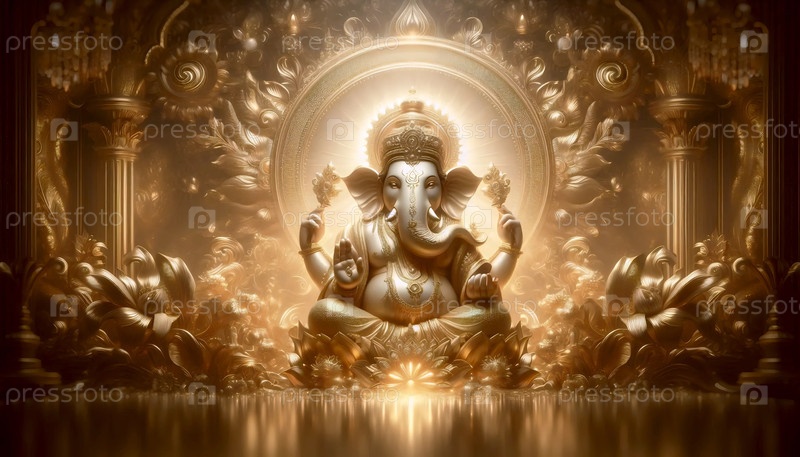 Господь Ганеша в золотой иллюминации, Ai generated A image
