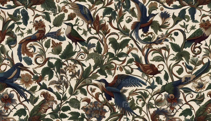 Уильям Моррис ботанические узоры винтажный дизайн без швов, Ai generated image