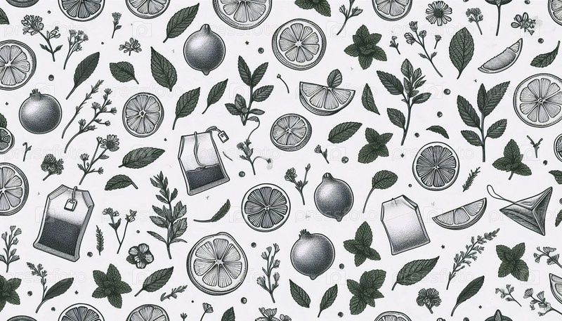 Минималистский рисунок линейного искусства цитрусовых и трав без швов, Ai generated image
