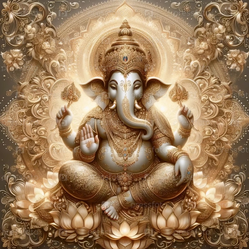 Господь Ганеша в золотом черниле, Ai generated image