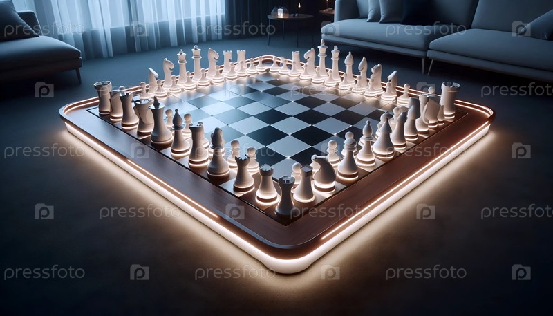 Шахматная доска со светодиодным освещением, Ai generated image