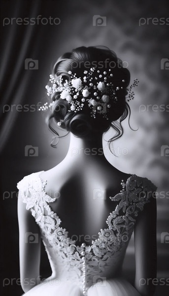 Винтажная невеста возвращается со сложной прической, Ai generated image
