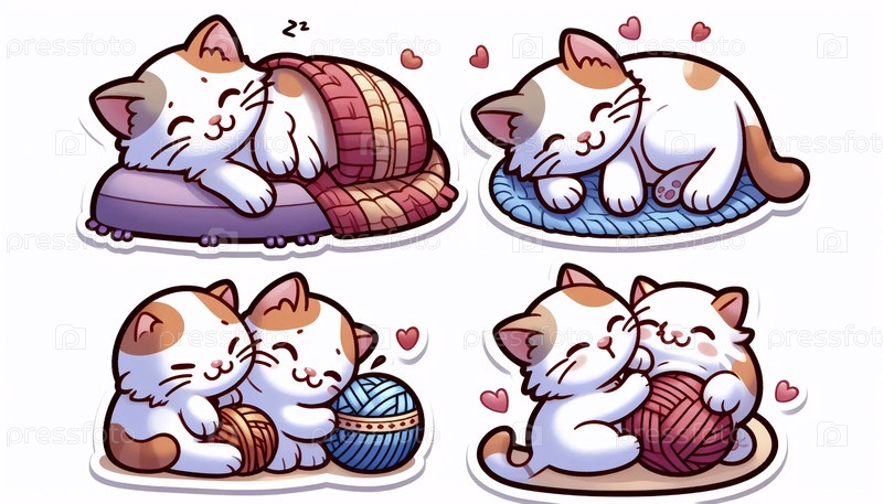 Лист наклейки из мультфильма о милой семье кошек, Ai generated image